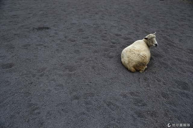 綿羊躺在火山噴出來的火山灰上。22號的時候,智利的卡爾布科火山(Calbuco)在沉寂 50年後再度爆發,濃濃的火山灰一口氣衝向空中,火山灰最遠甚至飄到巴西南部,許多原本要飛到智利、阿根廷和烏拉圭首都的班機都臨時取消。火山目前已經在 27號時平息下來,不過當地政府擔心火山會再次爆發,重創四周的環境。