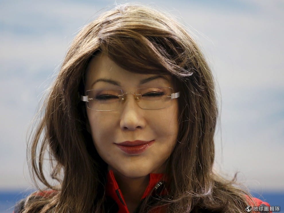 人型機器人洋洋(音譯,Yangyang)正在展覽場上微笑。機器人洋洋在中國北京舉辦的 2015全球網路大會(GMIC)展示,洋洋是由上海羊羊機器人中心、大阪大學智能機器人研究所石黑浩教授共同研發的人型機器人,會笑、會生氣、還會唱歌說話。