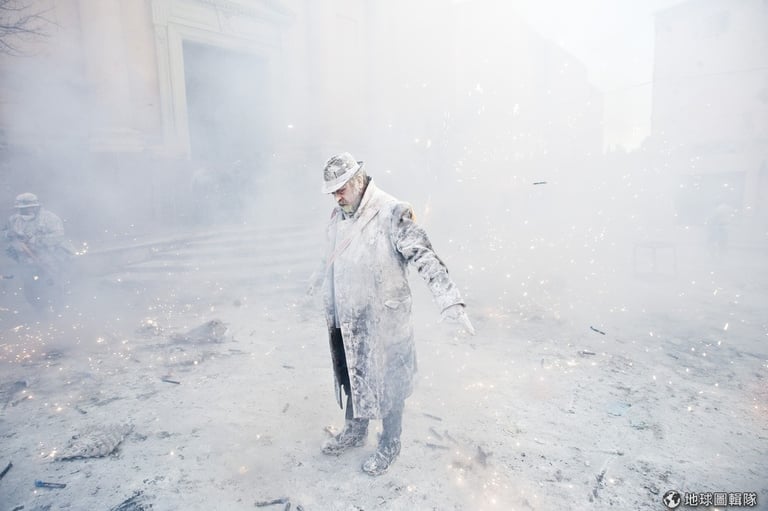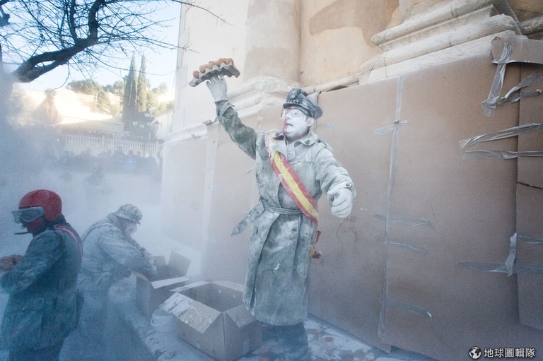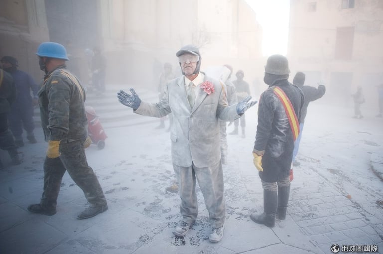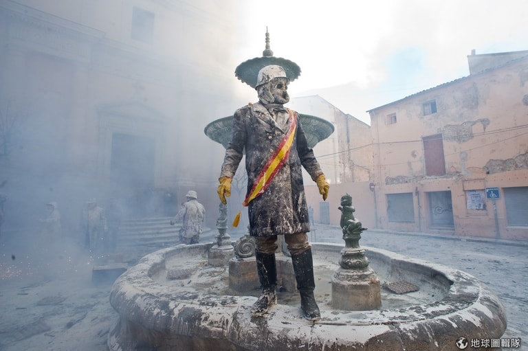 每年12月28號,西班牙的小鎮「伊維」(Ibi)會瞬間變身成「白色世界」,這天不只是街頭巷尾,連出現在街上的路人都會被大量的雪白粉末覆蓋。