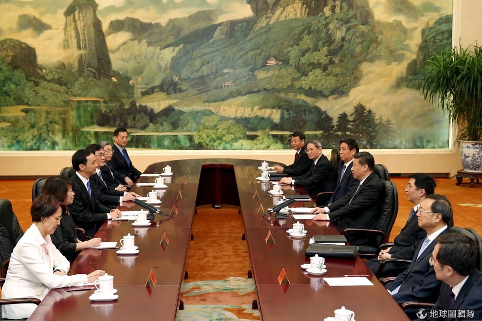 容:這樣層級的黨對黨會面很罕見,從 1949年以來只有三次。第一次是 2005年政黨輪替國民黨變在野黨時,第二和第三次是國民黨執政的 2008年和 2009年。2009年到 2014年這段時期,國民黨黨主席馬英九同時是台灣總統,這樣層級的會談根本不可能,因為兩岸都有疑慮。中國擔心和馬英九見面代表他們默許了一邊一國,台灣則認為,如果馬英九以黨主席的身分參加這樣的會議,會讓他身為總統的身分降級。
