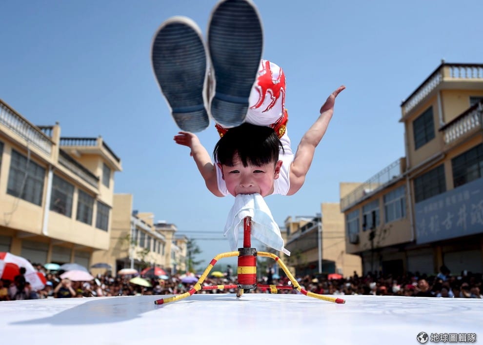 年僅 6歲的雜技表演人員在中國安徽省旅遊節的開幕典禮上表演。
