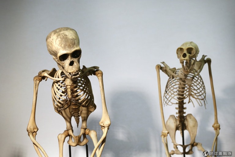 左邊是黑猩猩、右邊是長臂猿的骨頭,兩者擺在一起很明顯的差異喔!Peter Macdiarmid/Getty Images