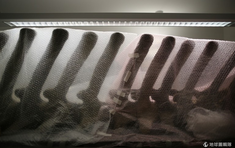 珍貴的抹香鯨脊椎,小心翼翼地收藏在防撞泡泡袋中。Peter Macdiarmid/Getty Images