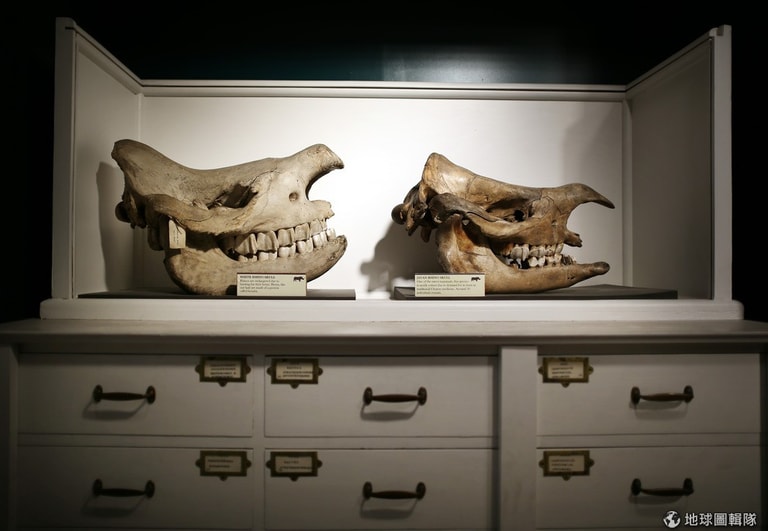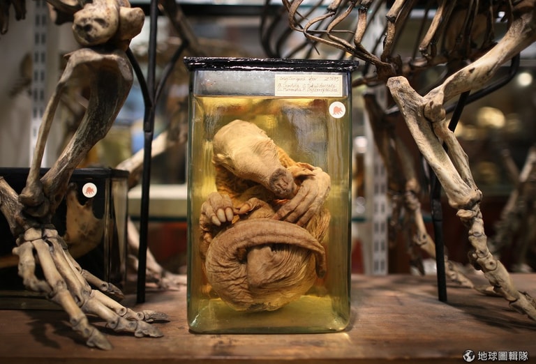 照片中央的動物是小「非洲食蟻獸」(aardvark),上方大型的骷髏就是成年版食蟻獸囉。Peter Macdiarmid/Getty Images