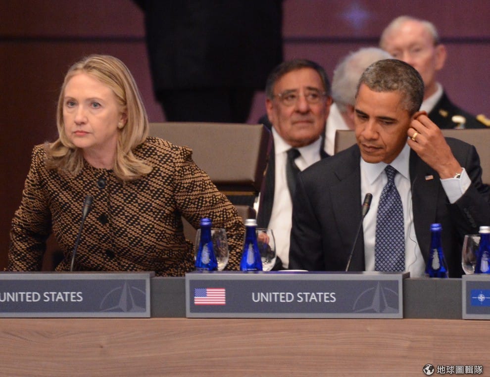 希拉蕊在歐巴馬任內時,在中東事務、亞洲關係和人權議題上皆展現強硬外交手腕,兩人這樣並肩而坐的畫面可能很難再見到了。Kevork Djansezian/Getty Images