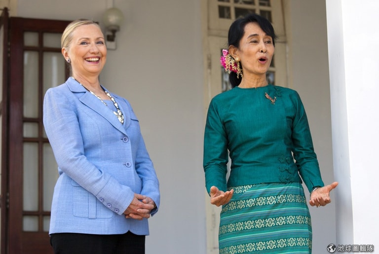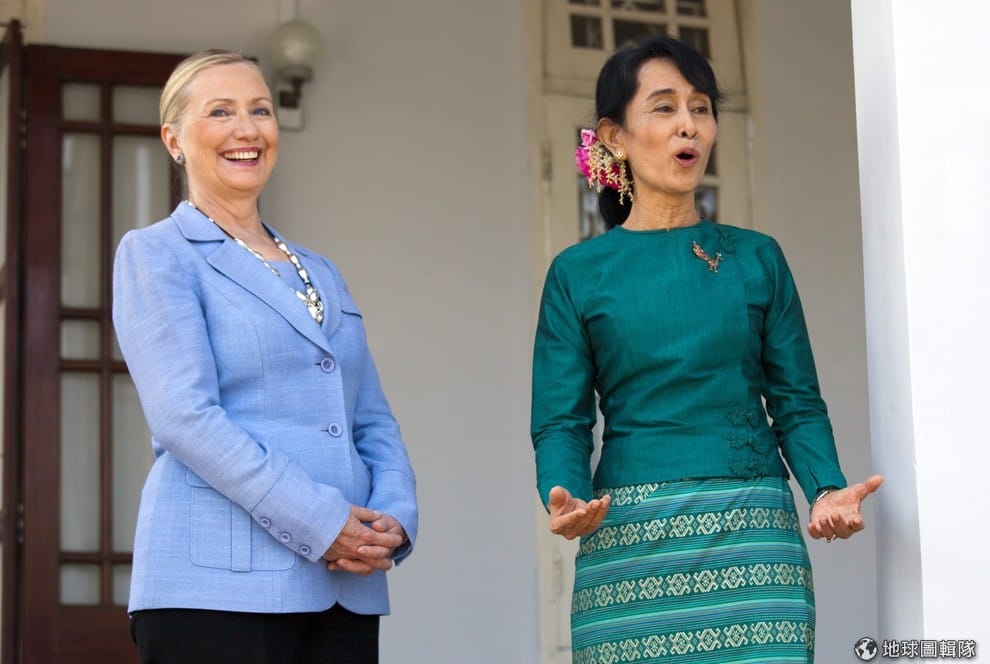 2011年,緬甸正吹起民主改革之風,希拉蕊當時就拜訪了翁山蘇姬。Paula Bronstein/Getty Images
