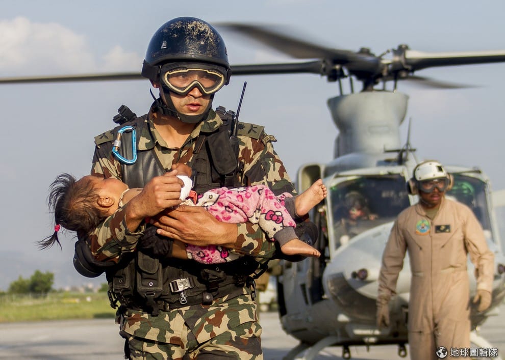 尼泊爾軍人手裡緊抱著在第二次大地震中受傷的小女孩,衝向加德滿都特里布萬國際機場的醫護站。12號,尼泊爾再次受到強震襲擊,這次地震規模達到芮氏規模 7.3,引發嚴重死傷。尼泊爾官方表示,這次強烈餘震已造成 48人死亡,上千人受傷,印度方面傳出至少有 17人身亡,中國西藏地區也有 1人身亡。