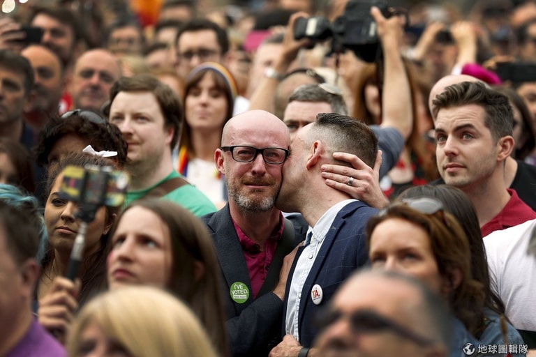 民眾感動相擁,他們見證了同志婚姻法案以 62%通過的重要時刻。5月23日這天,愛爾蘭成為全世界第一個由公投承認同性婚姻的國家。