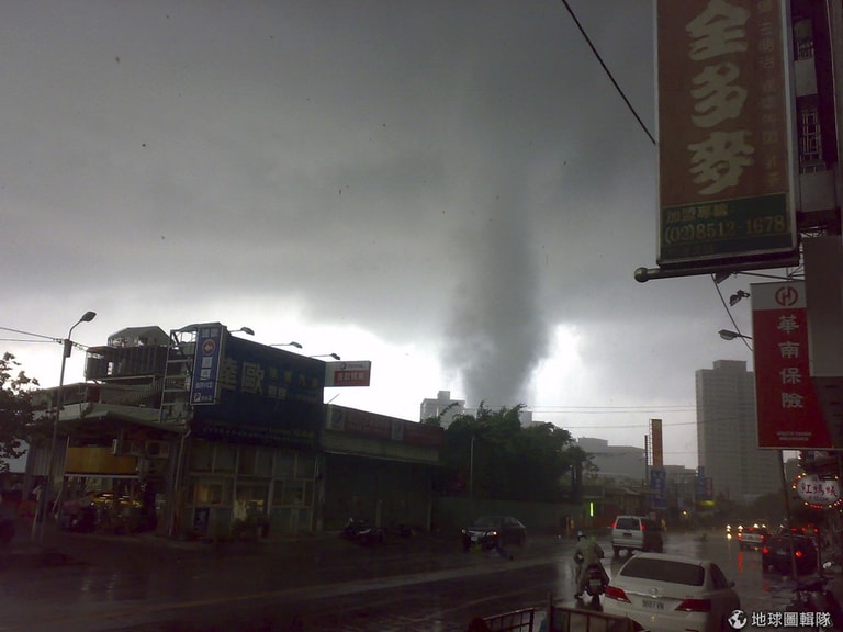 照片中是 2011年5月襲擊台北的龍捲風。
