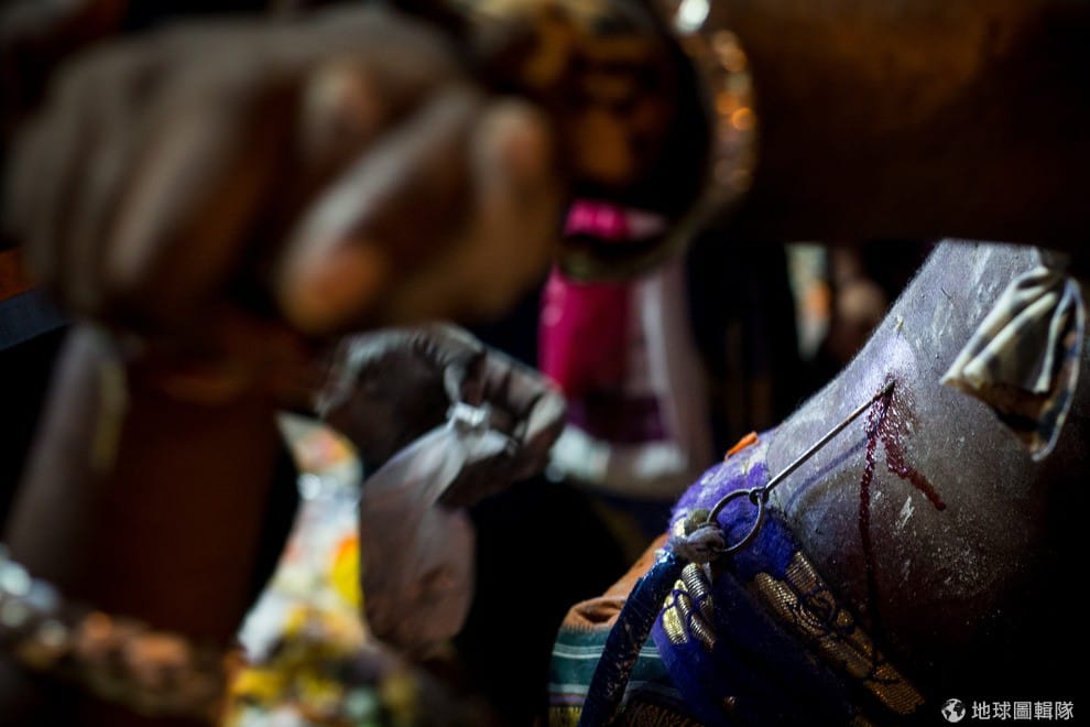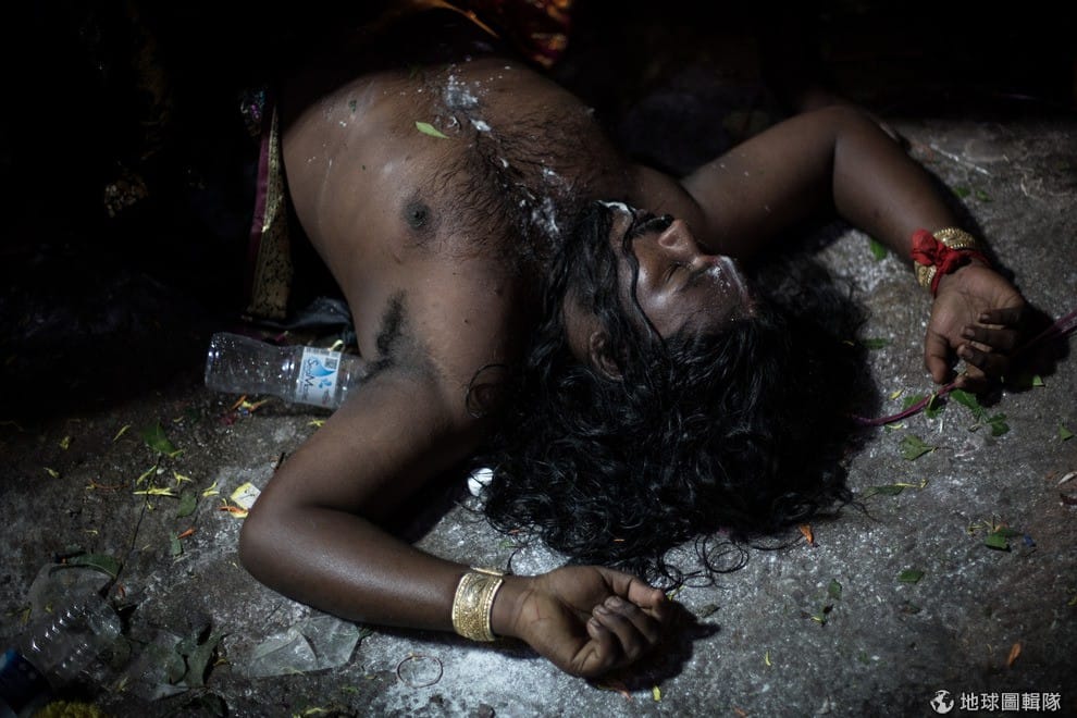 繼續閱讀鐵鉤刺到身體裡的傷口,仍流出了些許的鮮血,但對信眾們來說,這不會痛苦。或許只有經過這樣的苦行才能展現他們對神明的敬意吧。Chris McGrath/Getty Images