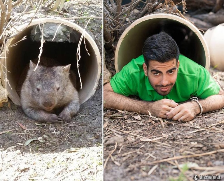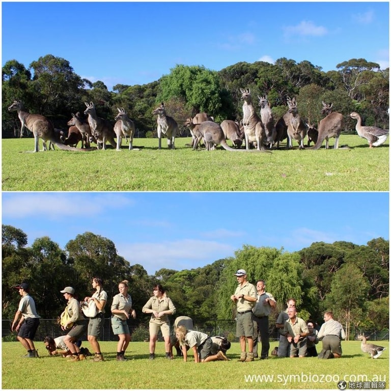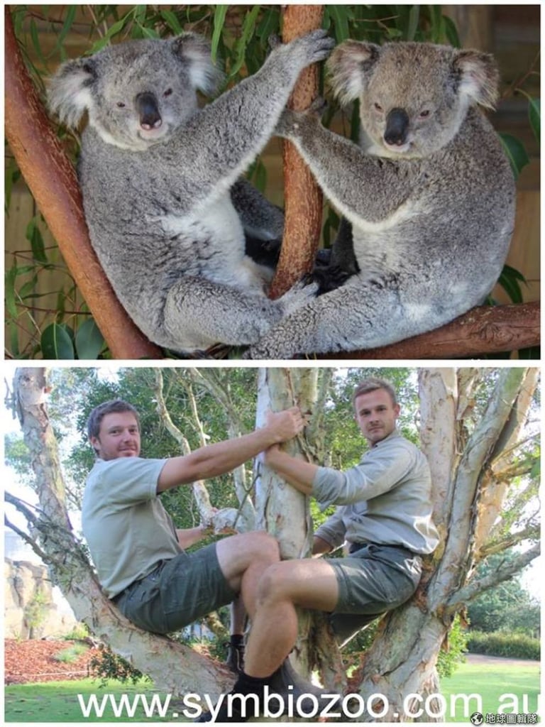 繼Symbio野生動物園的保育員模仿園中的老虎、狐猴和駱駝後,第二個發佈相關照片的是西澳Peel動物園,保育員大衛·科博爾德(David Cobbold)決定和他的同事們加入這場盛會,拍攝下他們惟妙惟肖的模仿慵懶的王八、想睡覺的無尾熊和流氓般的袋鼠!