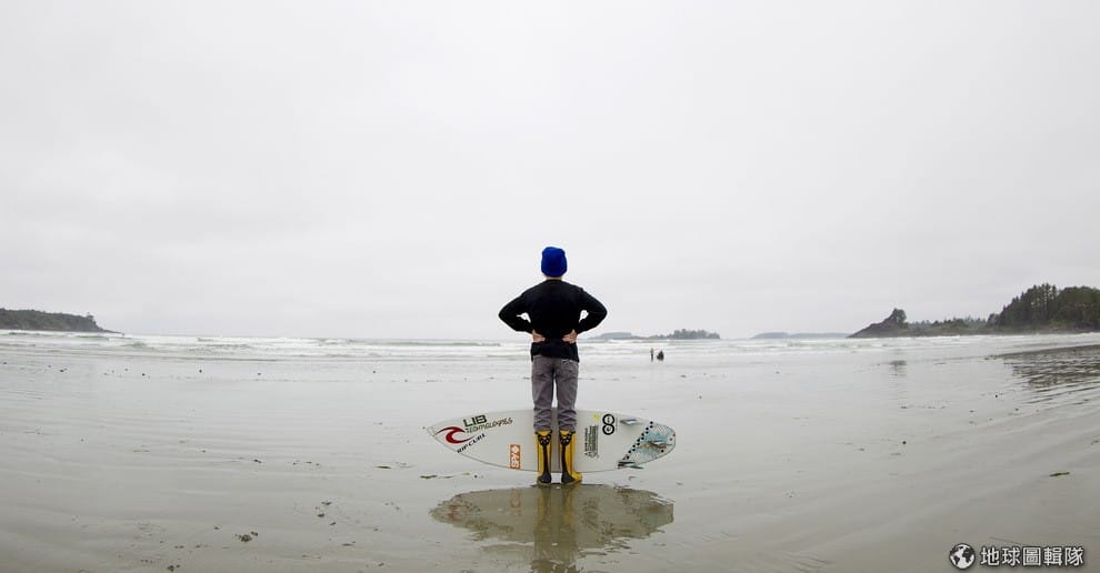 加拿大卑詩省舉辦衝浪冠軍賽,參賽選手看著遠方。