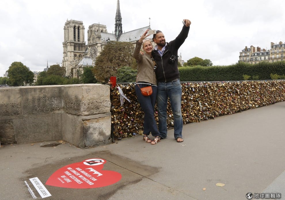 巴黎當局也加強宣導,希望情侶能用自拍示愛,不要再掛愛情鎖。