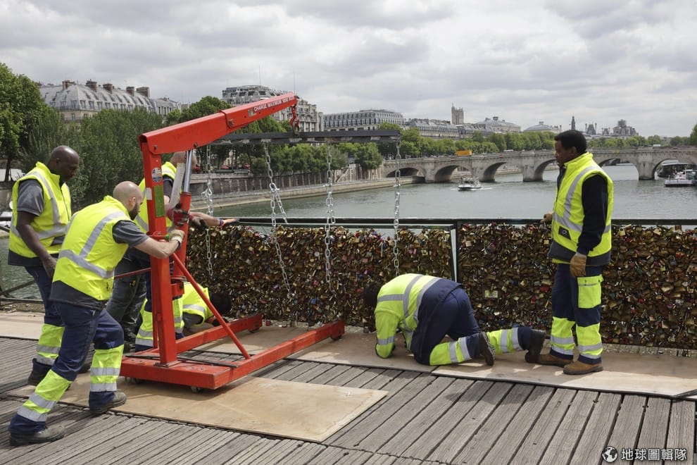 《法新社》1號報導,全球浪漫之都的巴黎,周一(1)卻上演一件令人心碎的事情,成千上萬掛在藝術橋上的愛情鎖全都被拆除。