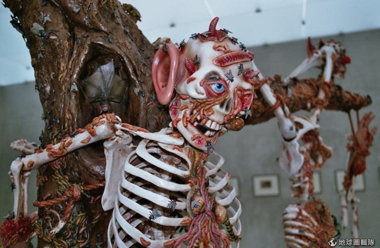 歷經分解、膨脹到一瀉而出,一個圍繞屍體而生的生態系統於焉成形,裡頭住著微生物、昆蟲還有清除者(scavenger)。