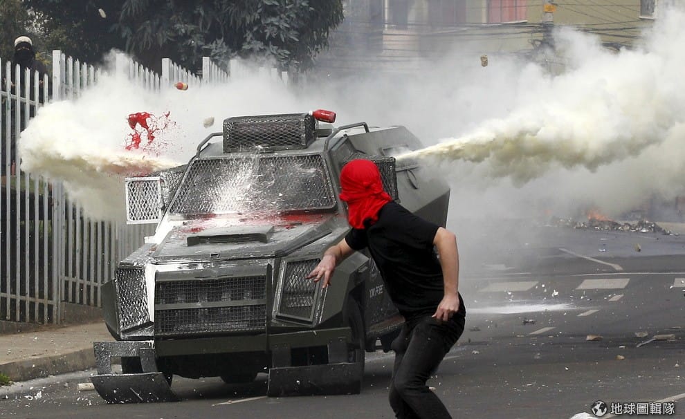 瓦爾帕萊索(Valparaiso)市區內,要求政府改革教育體制的學生們與警察發生衝突。