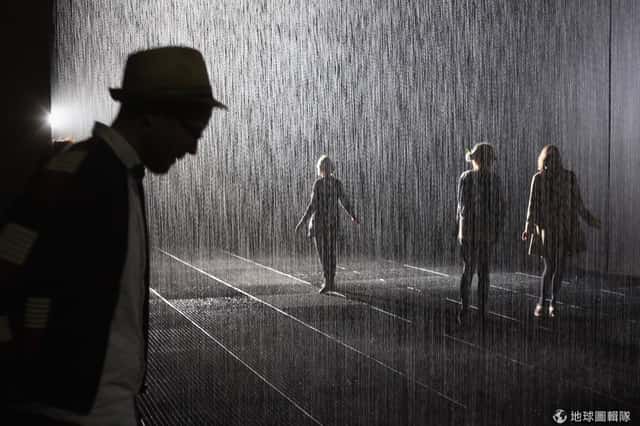 走進英國的「巴比肯藝術中心」(the Barbican Centre)的「雨屋」裡面,會看見100平方公尺的房間內不斷降下大雨,當你鼓起勇氣衝進去的時候,雨幕就會像「摩西開紅海」一樣在身邊展開,身上一滴水都沒有!