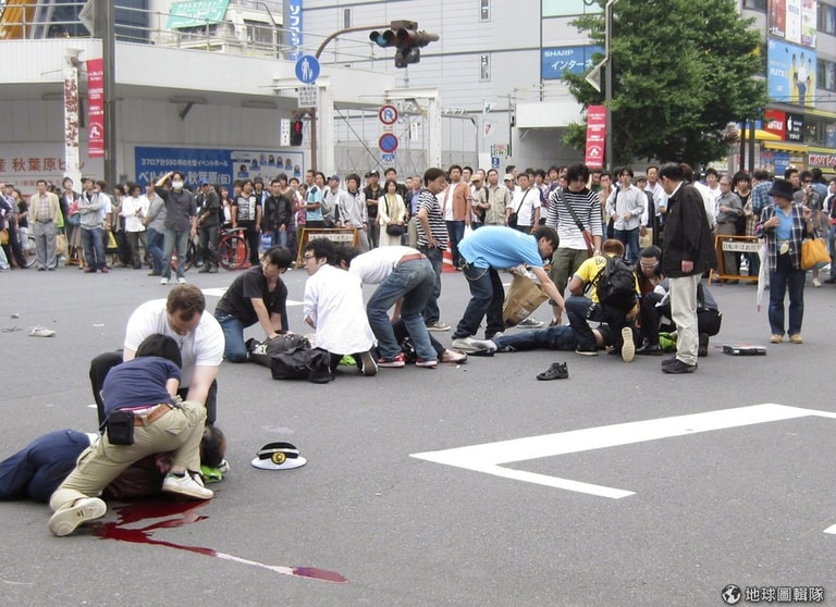 更糟的是,因為案發當天是星期日,秋葉原的行人專區滿是人潮,場面陷入混亂。最後這場隨機殺人事件釀成 7死 10傷。