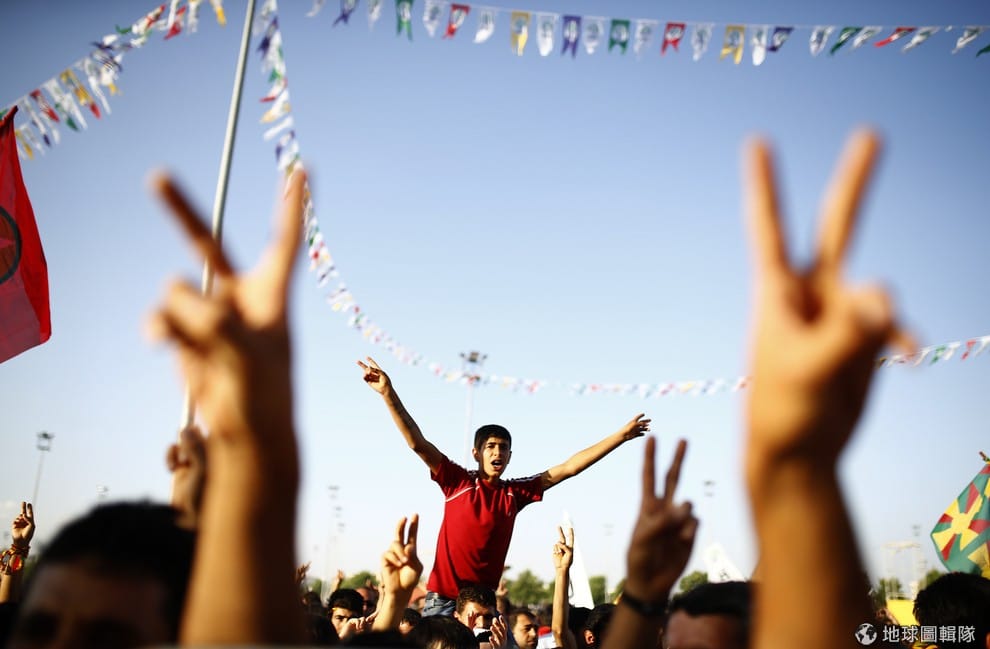支持土耳其人民民主黨(HDP)的人開心歡呼,慶祝他們支持的政黨拿到進入國會的門票。土耳其在 7號時舉辦國會大選,小黨人民民主黨靠著絕佳的策略,拿到超過門檻 10%的選票,成功進軍國會。