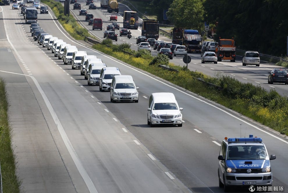 一輛輛載著棺材的車子準備前往德國西部的哈爾滕(Haltern),棺材裡面的是日耳曼之翼4U 9525班機空難的罹難者。3月24日的時候,載有 144名乘客以及 6名機組員的德國「日耳曼之翼」航空公司傳出墜毀在南法的消息,機上全體乘客皆不幸罹難。
