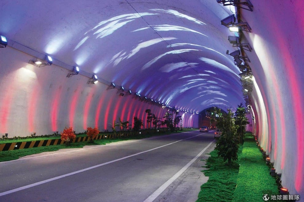 網友yoppy秦嶺終南山隧道內設置花草和燈光減低疲勞。