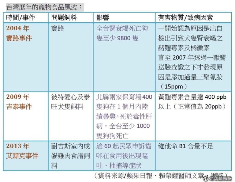 中華民國保護動物協會2009年時曾經歷毒飼料事件,造成保育場內248隻狗狗不幸喪命。協會秘書長黃慶榮表示,過去將寵物食品排除在畜牧飼料法之外,所以發生多起中毒事件,認為現在制訂寵物食品規範是好的,但現在檢驗標準採正面表列,無法防範未知的有害物質,因此需要政府、學者和業界隨時注意。他也建議應將所有寵物可含啣於口內的東西(如潔牙骨、玩具等)都列入管理,才能確實保障寵物健康。