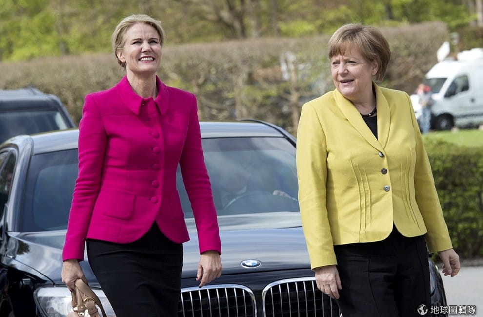 丹麥首相施密特(左)和德國總理梅克爾,都是歐洲少數的女性領導人。