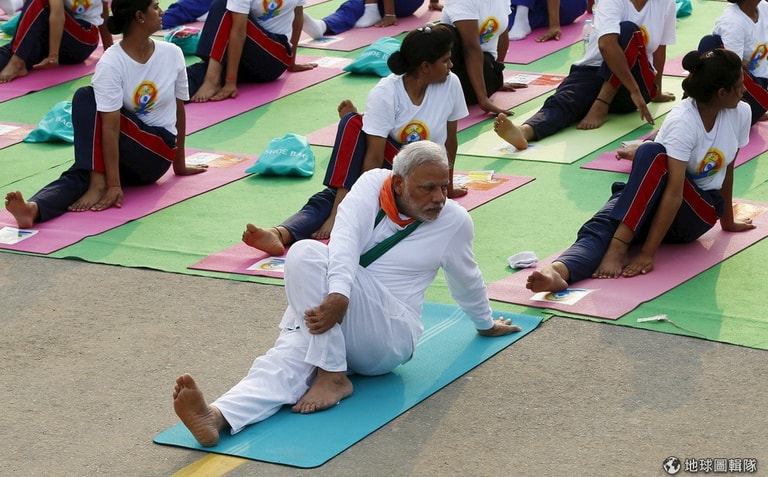 莫迪也把瑜珈當成一種將印度推廣到全球的極佳方法,有什麼國家象徵可以比瑜珈這種強調健康與和諧的古代傳統更適合?