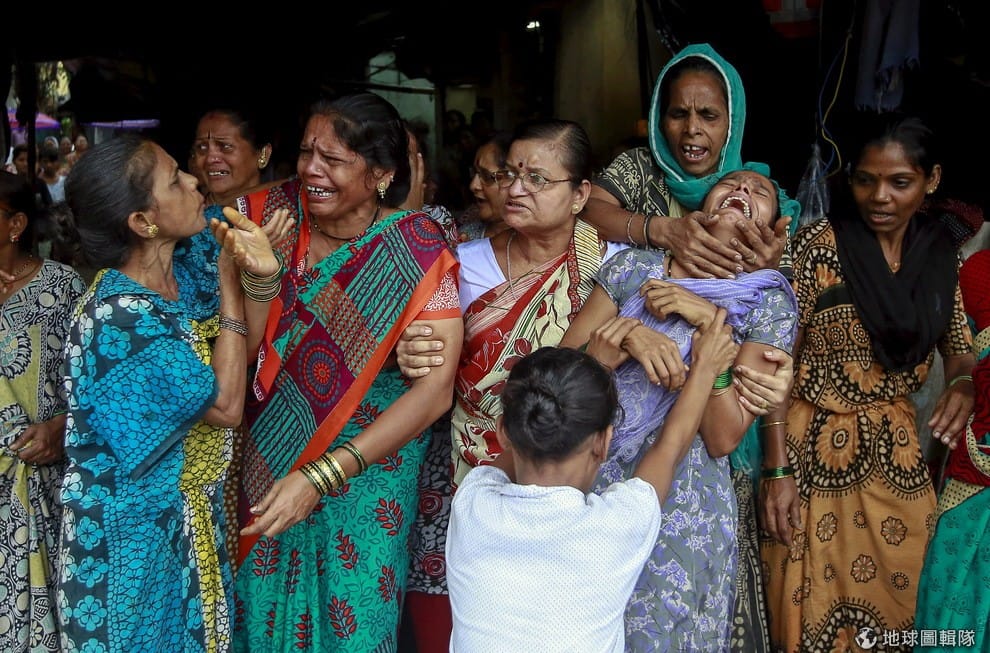 在孟買的貧民窟中,親友們齊聚一堂,哀悼喝到假酒中毒身亡的男子。根據警方在周日(21)的資料,私釀有毒假酒已經讓至少 94名貧民窟居民死亡,超過 45人還在醫院治療。