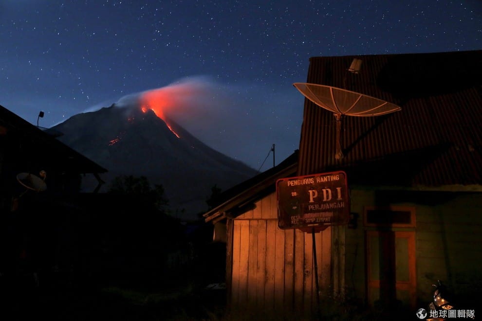 位於蘇門答臘島南邊的西納彭火山(Mount Sinabung)爆發,岩漿汩汩流出,在暗夜中格外顯眼,附近 12個村落超過 1萬名居民被緊急撤離到難民營。