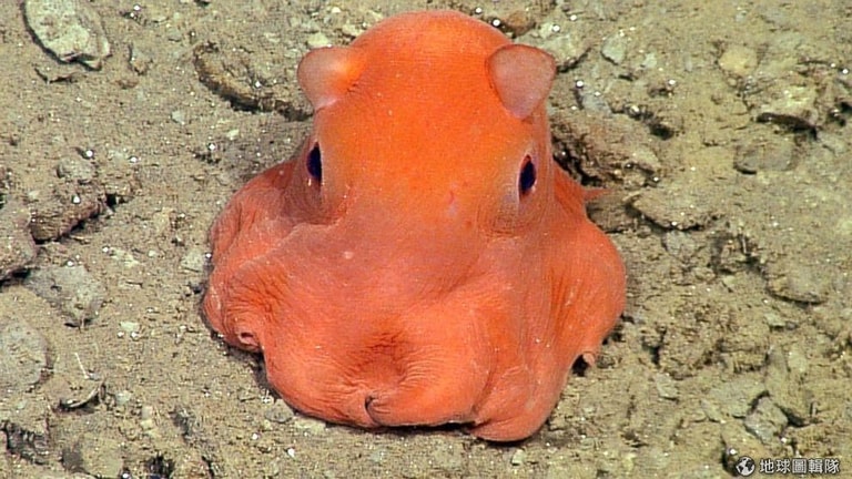 在還沒命名之前,研究員們稱這些小傢伙為「煎餅章魚」(flapjack octopus),因為牠們攤平時看起來就像塊煎餅,煎餅章魚像其他章魚家族的成員一樣,會攤開觸手間的蹼狀結構,像降落傘般盤旋在海床上,也會用鰭控制方向前進,煎餅章魚頭上兩個可愛的小耳朵就是牠們的鰭。