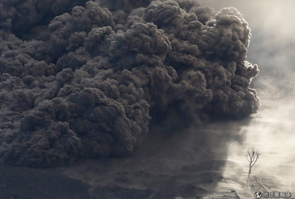 位於蘇門答臘島南邊的西納彭火山(Mount Sinabung)爆發,火山灰瀰漫整個天空,附近 12個村落超過 1萬名居民被緊急撤離到難民營。