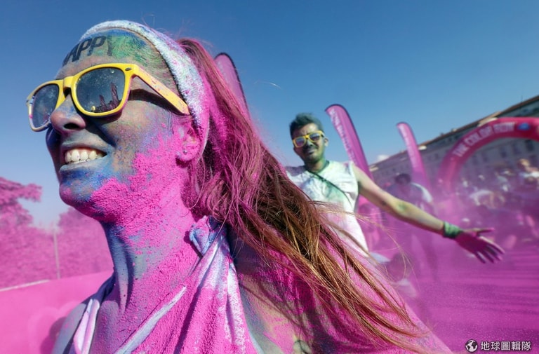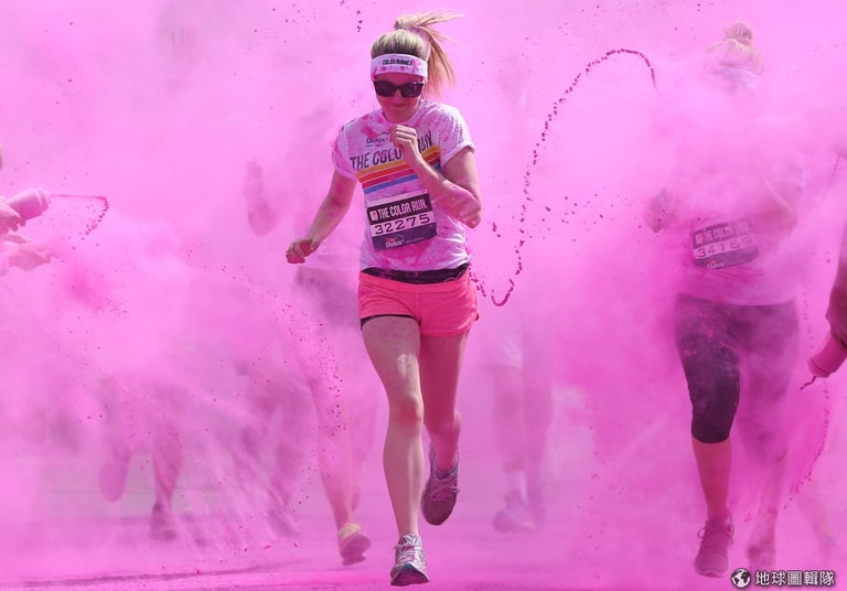 在跑步的過程中,工作人員會在不同區域向跑者潑灑不同顏色的彩粉,參加者被要求穿著白色衣物,等通過終點線後每個人身上都五顏六色的,歡樂的氣氛讓彩色路跑席捲全球超過 50個國家。