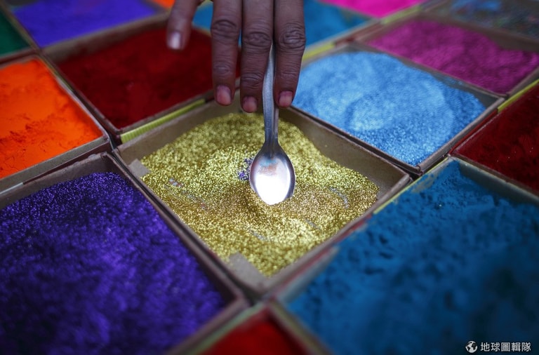 在色彩節這天,大街小巷都是彩色粉末,人們不分階級朝對方潑灑彩粉,每一種顏色都有不同意義,灑到對方身上就代表給對方各式各樣的祝福。