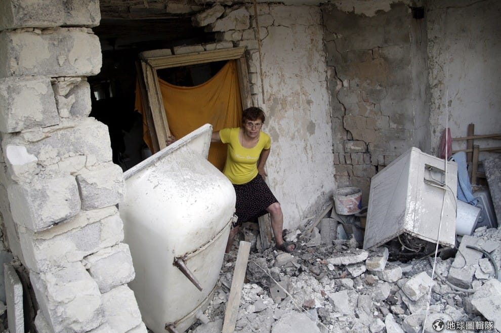 烏克蘭的內戰延續到現在,照片中居民的家就因為戰爭被摧毀。