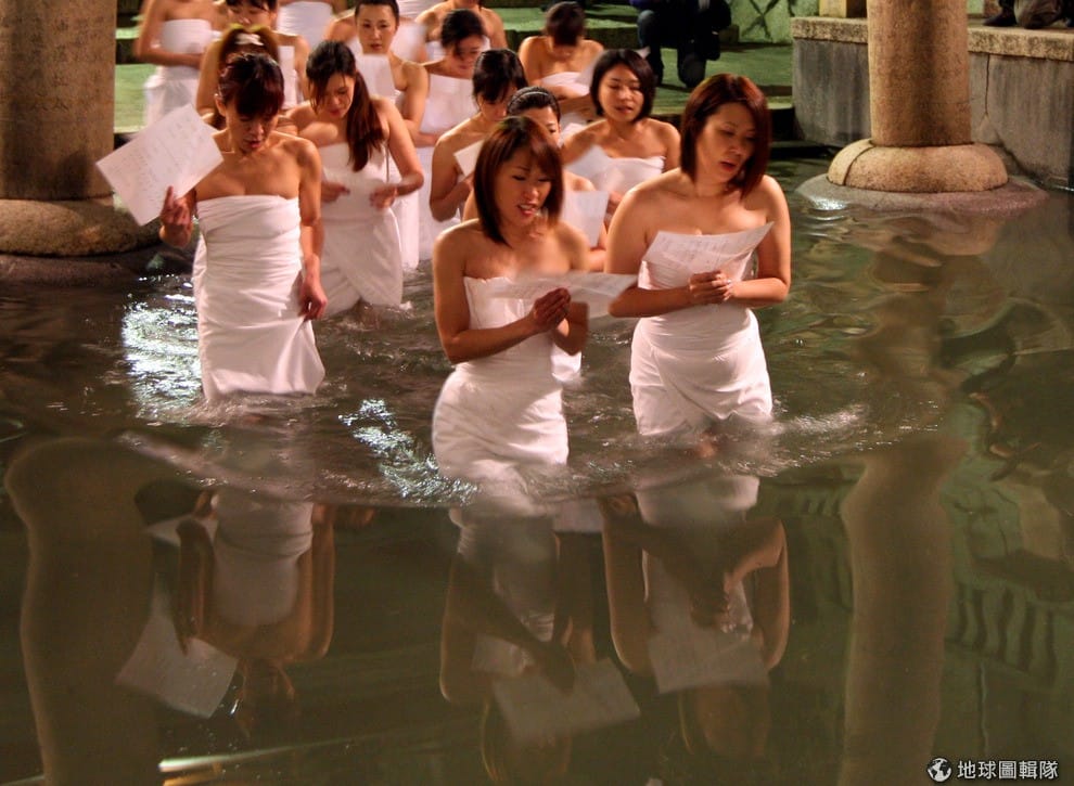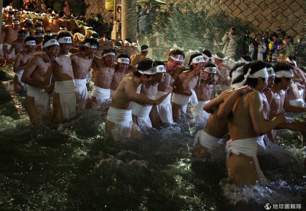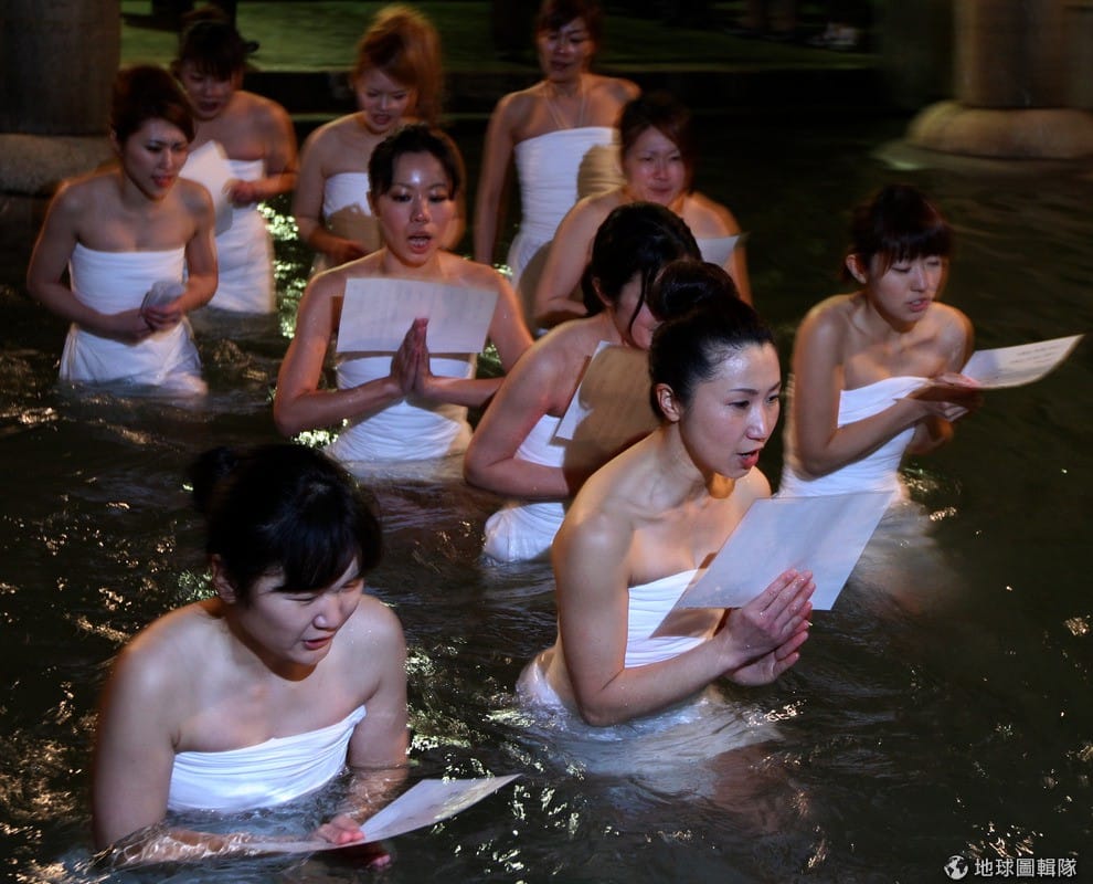 搶神木的活動是給男性參加,也有女信眾很勇敢地僅包著毛巾踏入寒冷的冰水中祝禱誦經。Buddhika Weerasinghe/Getty Images