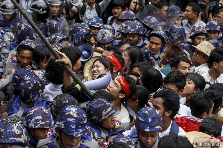 抗議學生和警方發生嚴重推擠,他們不滿緬甸軍方把持國會,要求軍方全面退出國會。目前,緬甸國會中有四分之一席次由軍方指定,不須經由選舉,引發緬甸民眾反彈。
