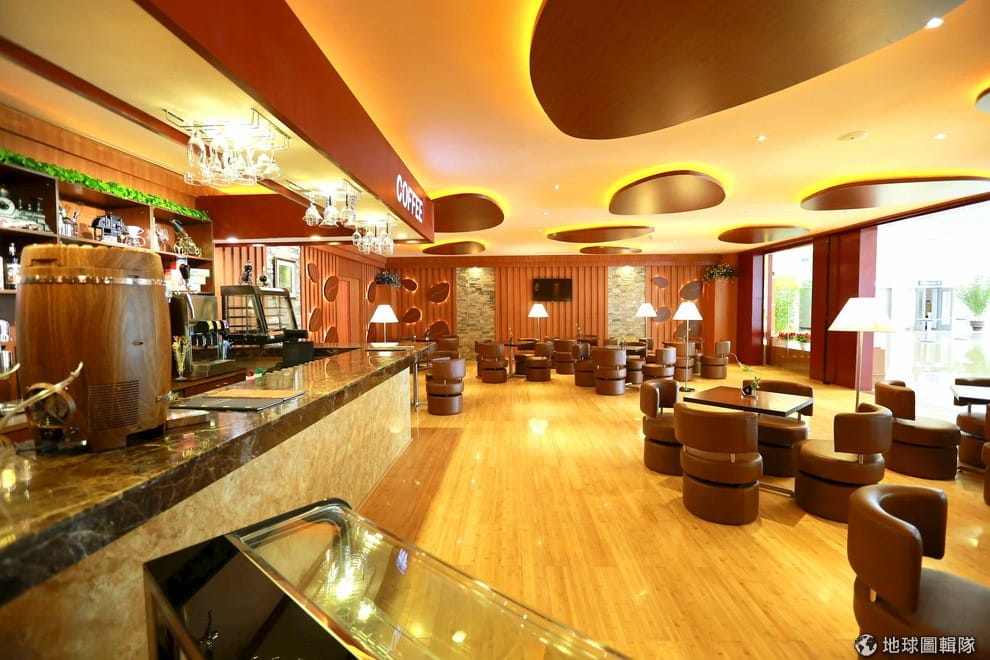 新航廈內設置的用餐區,吧檯上可以見到咖啡機等等。