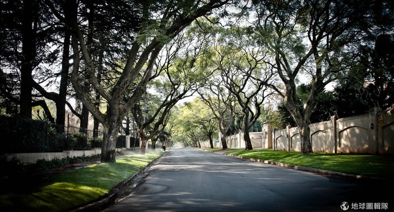 「在約翰尼斯堡,大多是用傳統方法來打敗高溫,也就是用影子和水。影子的主要來源是樹,約翰尼斯堡擁有世界上最大的人造林,在這座黃金城裡種了超過 1千萬棵樹。