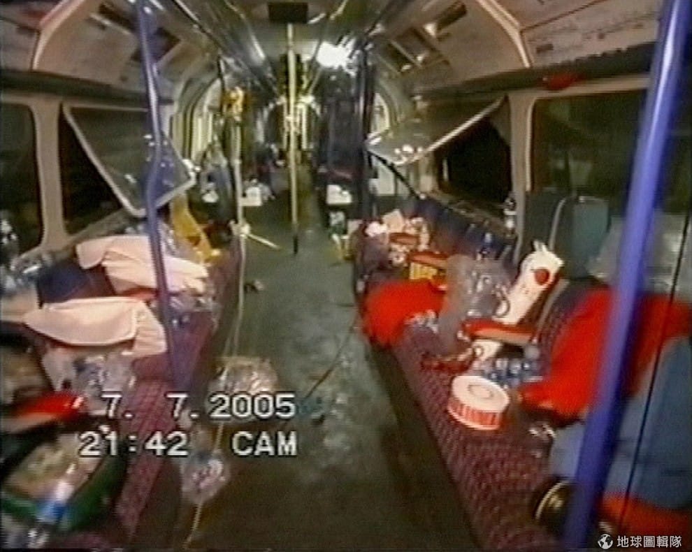倫敦地鐵的監視攝影機記錄下了爆炸過後一片狼藉的現場。