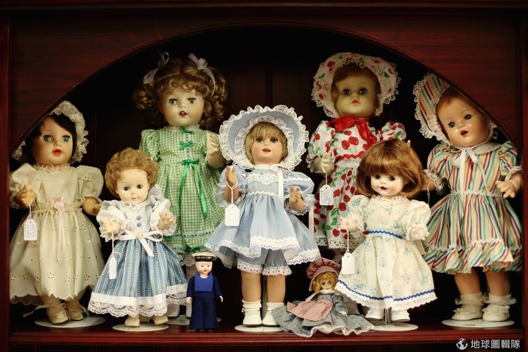 第3代老闆查普曼,站在一架架的娃娃堆中。Mark Kolbe/Getty Images