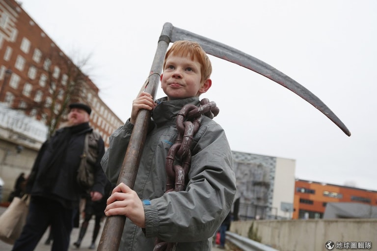 小男生買到了他想要的大鐮刀道具。Oli Scarff/Getty Images