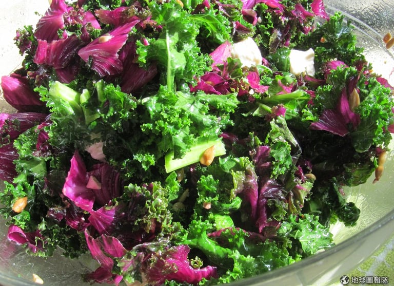 註3:羽衣甘藍是近年來受人追捧的超級食物,營養價值高、低熱量、不含脂肪,本身含有豐富的維生素A、C、D、K還有非常高的礦物質元素,像鐵、鈣、銅、錳、硒和鋅。此外,據傳從羽衣甘藍中提煉的物質還可以抗癌。