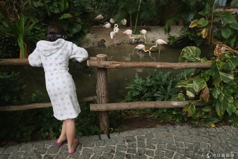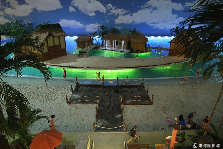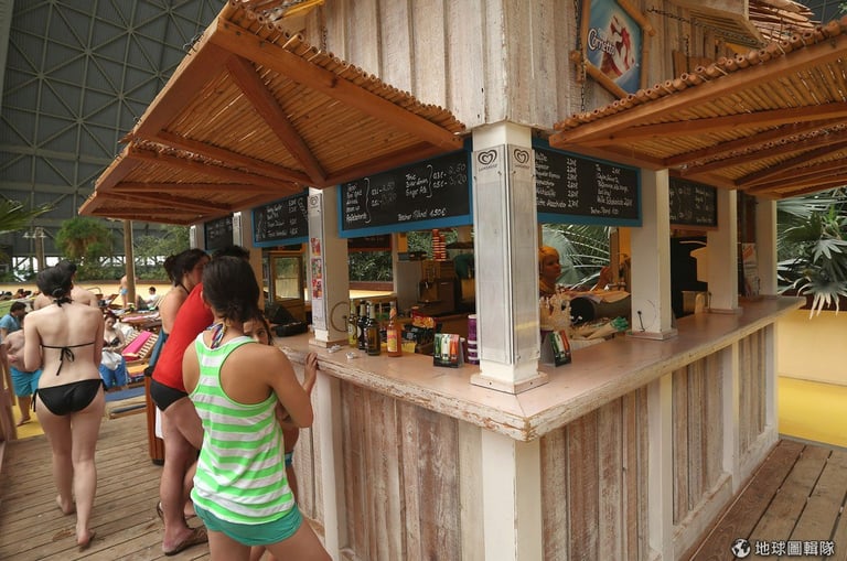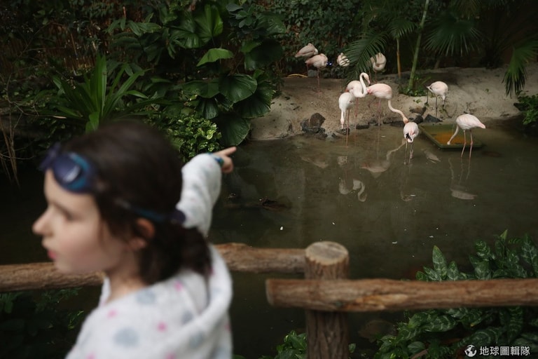 遊樂園中不僅僅提供水上遊樂設施,連各種擬真的設計例如鳥類、樹叢都搬進樂園中,讓進去找溫暖的遊客可以忘記室外的低溫,盡情徜徉在遊樂園製造的「熱帶夢幻」中!