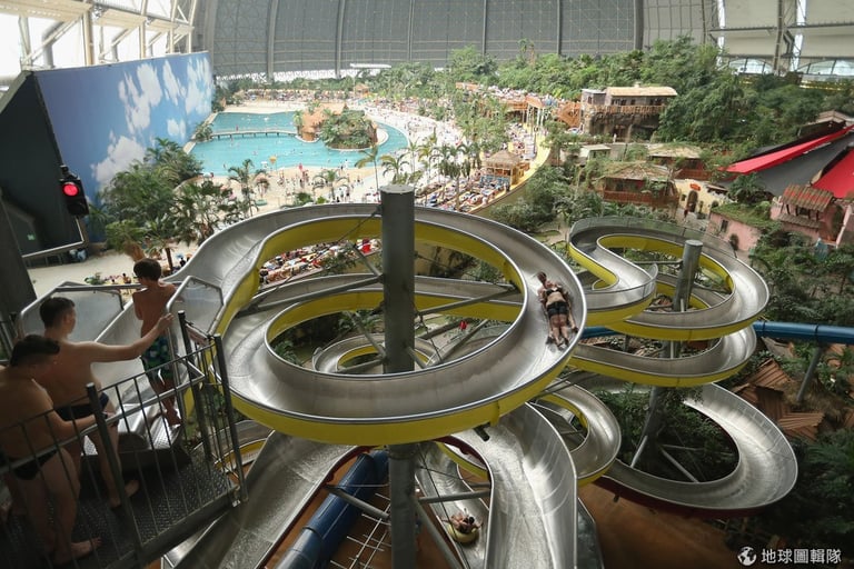 沒想到,德國當地確有個超大的「熱帶樂園」,讓當地居民在下雪的時都能享受脫去外衣,跳進池水大游特游的夏日風情!