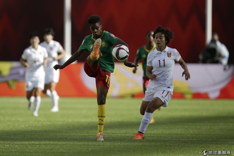 喀麥隆是個以足球出名的國家,根據《維基百科》資料,喀麥隆是眾多非洲國家中最多次晉身世界盃決賽周的國家,一共為六次,也是成績最好的非洲國家。圖為 2015年女足世界盃比賽中,正在互相對抗的喀麥隆隊(綠衣)與中國隊(白衣)。