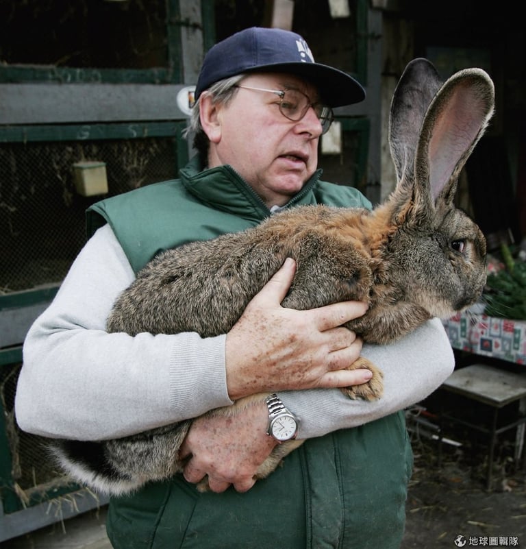 德國有隻叫「羅伯」的大灰兔,正乖乖地被主人抱著。這隻灰兔重達8.5公斤、耳朵有25.5公分長喔!Sean Gallup/Getty Images
