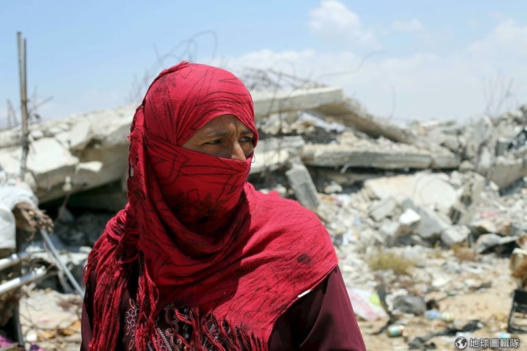 加薩走廊連年戰爭,一名婦女望著被以色列攻擊後的家園。