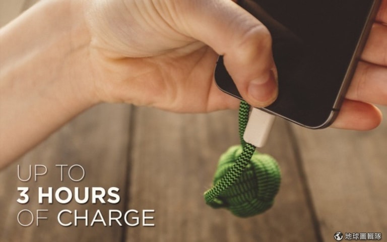 「粗繩結」外表看起來像是給貓咪玩的毛線球,其實是行動電源。Photo credit: Indiegogo