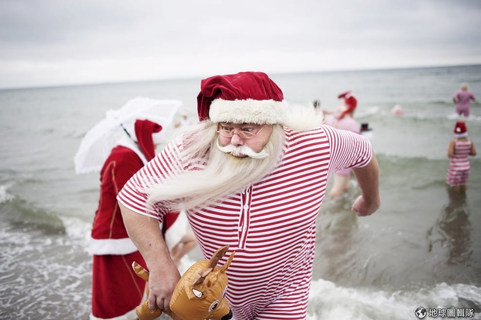 2015年世界聖誕老人大會(World Santa Claus Congress)的參加者,打扮成聖誕老人的樣子到海邊游泳。20-22號這段期間,世界各國的聖誕老人來到哥本哈根,一起到海邊游泳、參觀哥本哈根名勝小美人魚,還舉辦了遊行跟障礙賽,熱熱鬧鬧地開心一下。